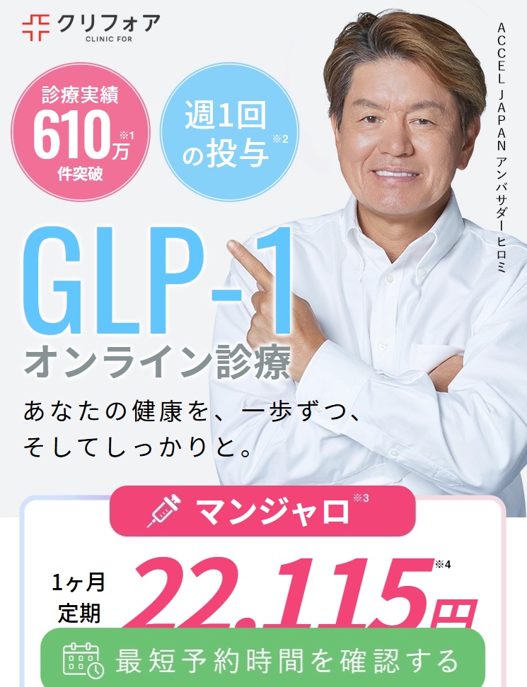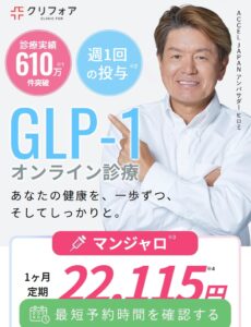 価格、対応、信頼性のすべてを兼ね備えているのがクリニックフォアです。はじめての方でも安心して利用できる環境が整っており、マンジャロを最安・安全に入手したい方には最有力候補と言えるでしょう。