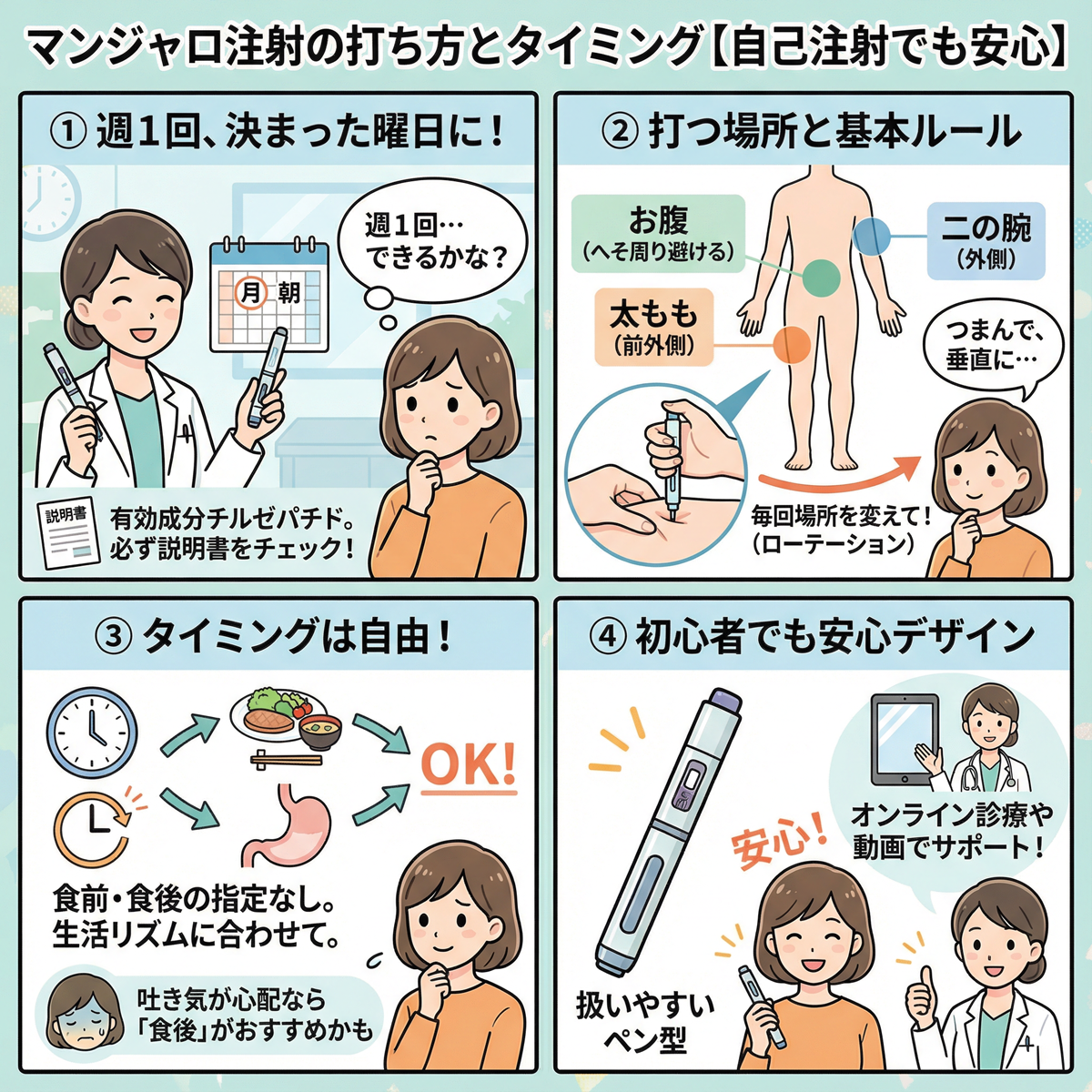 マンジャロの自己注射は、慣れてしまえば 数分で終わるシンプルな手順 です。
