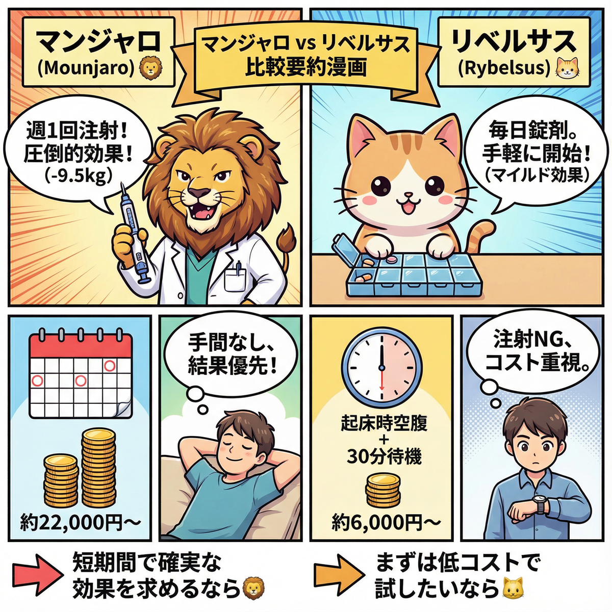 マンジャロとリベルサスの違いとは?それぞれの特徴と選び方を解説